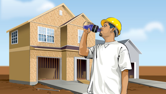 - Para prevenir riesgos laborales relacionados con el calor, antes de comenzar a trabajar beba agua hasta sentirse lleno. Luego, durante el resto del día y con una frecuencia de 15 minutos, beba otro vaso de agua o bebida hidratante deportiva.